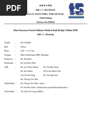 Minit Mesyuarat Panitia Bm Kali Ketiga 2020 Pdf