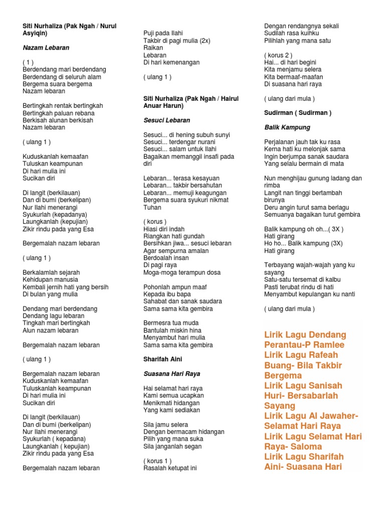 Satu Hari Di Hari Raya Koleksi Raya By Song Lyric by M. Tawan anawau au ogina. Okito titiu babang olundus.