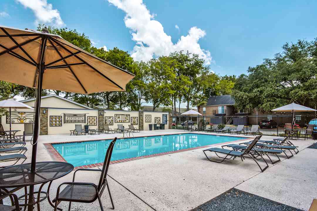Stylish Comfortable Convenient. Check out our gorgeous pool here at The Arts at Bluebonnet Place. Suns out Sunnies out.